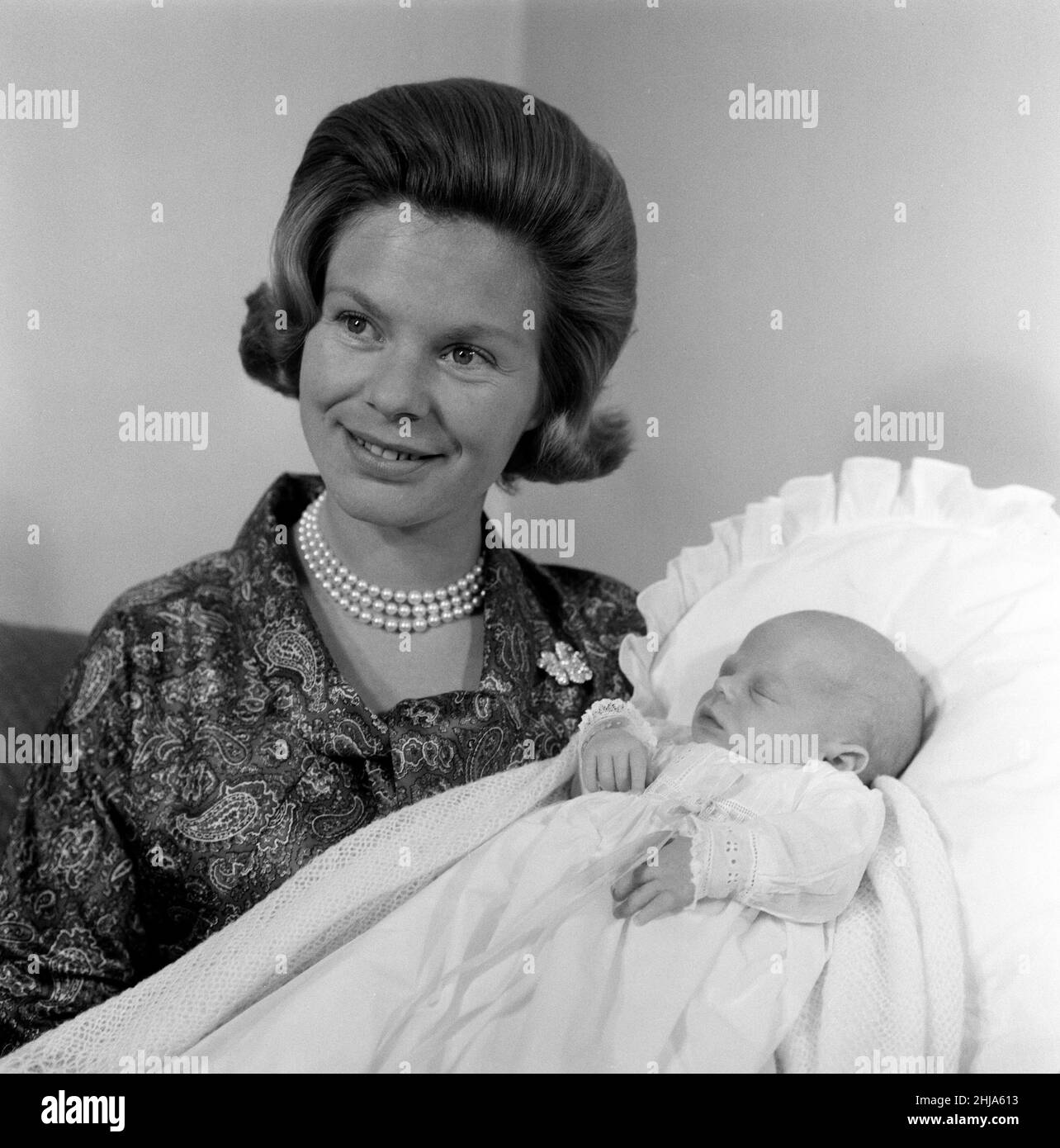 Going through images of the late Duchess and looking for information on her jewellery I came across a brooch that she seems to have worn quite regularly early in her marriage. At least I think it is the same brooch. The one I am thinking of was worn by the late Duchess for the official photographs released with her newborn daughter Lady Helen in 1964 (the first photo below). But then looking even further back she seems to have worn the same brooch for the official photographs released with her firstborn as well (second photo). Would you say that this is the same brooch?